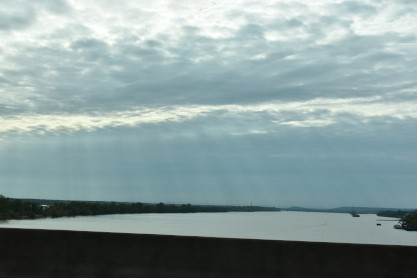 Our crossing of the Tennessee River in daylight. We then drove to Athens and had breakfast at the International House of Pancakes.