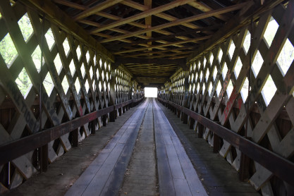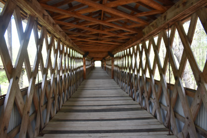 Walking through the covered bridge.