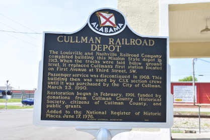 The 1913 Louisville and Nashville station in Cullman. This is one of the most impressive small Louisville and Nashville stations I have seen, with their emblem so predominantly displayed.