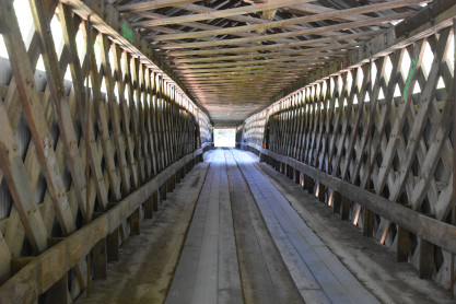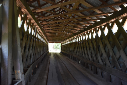 The inside of the Easley Covered Bridge.