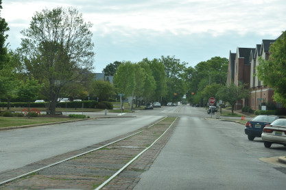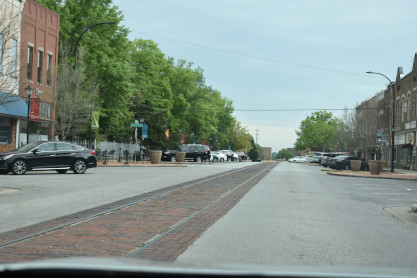 On two streets we found tracks embedded in the pavement.