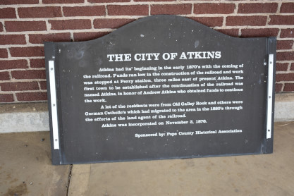 The City of Atkins plaque waiting to be installed on the building. Our next town was Beebe.
