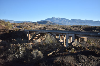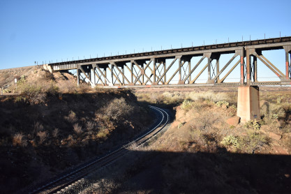 We left the Copper Stay Inn and headed to Mescal where the old coaling tower no longer exists. We then drove to the bridge at Vail so I could show Elizabeth this famous railroad photography location.