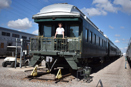Elizabeth enjoying the view from the open platform. I would like to thank the Arizona Railway Museum for having us today and we were both highly impressed by all of their equipment that they have on display. After that, we drove to the Best Western Inn and checked in. I wrote the story then watched the Pittsburgh Penguins win their hockey game against the New York Rangers on the computer after we had KFC for dinner then called it a night.