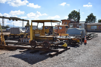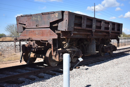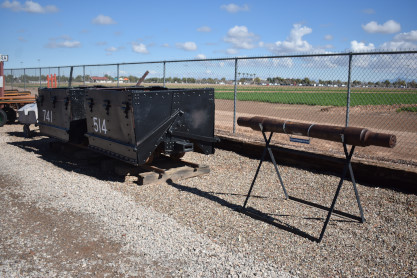 San Manuel Railway Rider Car 184 built by MAGOR in 1955. These cars ran on the lead/rear of the train between the San Manuel smelter facility and the mine. The car was in the lead on the empty shove to the mine and trailed bringing loads to the smelter. The car was donated by Capstone Mining through the generosity of Ron Lewallen.