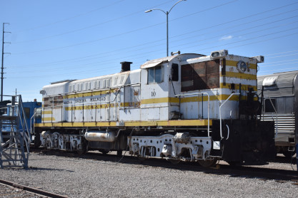 Arizona Railway Museum ML-8 switcher 1 built by Plymout for the U.S. War Department as US 7595 and stationed at the Army Air Corp's Victorville Advanced Flying School, in Victorville, California. In November 1966, it was sold to private company M. Lummis & Co of Richmond, California and was later owned by Pacific Railroad Contractors of Torrance, California, and finally Railroad Builders of Mira Loma, California, who donated the locomotive to the museum in 1988. It was named for the locomotive's long-term caretaker, George E. Holt, in 2005.