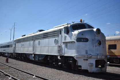 Santa Fe coach 3166 "Regal Phoenix" built by Budd in 1946 as 52 seat coach. This car saw service on many Santa Fe streamlined trains, one of which was the Hassayampa Flyer which ran from Phoenix to Williams Junction. The car went to Amtrak in 1971 and was renumbered 5236. The car was scheduled for shop work and conversion to 60 seats in 1976 but the work was never done. It was retired in 1977 and sold to the United States Air Force and moved to Vandenberg Air Force Base in California. The interior was mostly removed to facilitate rebuilding as a hospitality car but the work was never completed. The car was purchased by John Clark in 1990. Mr. Clark sold the car in 1993 to Rail Preservation Inc. of Scottsdale, Arizona. The car was passed on to the museum in 1996. The Arizona Railway Museum re-named the car "Regal Phoenix" and is continuing the re-build of the car as a full lounge.