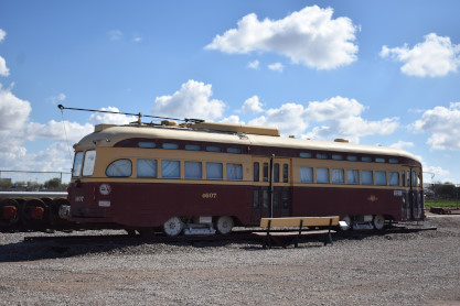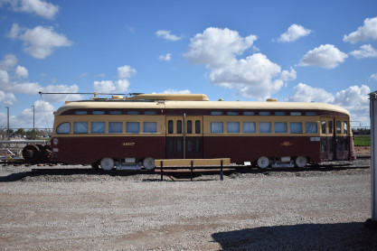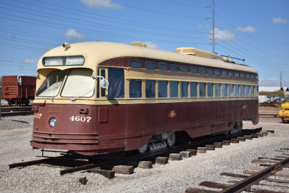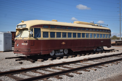 PCC Car 4607 built by Canadian Car and Foundry/St. Louis Car Company in 1951. It was acquired from the Phoenix Transportation Department where it was a display downtown. It originally ran in Toronto, Ontario and sold to City of Phoenix in 1996.