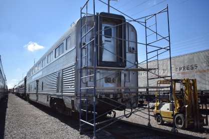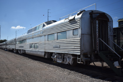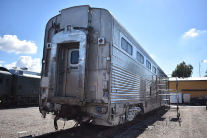 Santa Fe high-level coach 708, built by Budd in 1956 and used on the El Capitan. This became Amtrak 9948 and 39948 and the Arizona Railway Museum acquired the car in 2019.