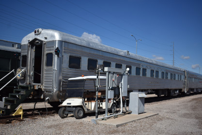 Union Pacific diner 4815 built by American Car and Foundry in 1949. It was sold to the Alaska Railroad in 1971 and sold in 2001; the museum purchased it in 2003 and named it City of Chandler.