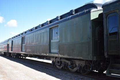 New York Central 4-4-2 sleeper "Imperial Manor" built by Pullman 1939. The car was originally named "Imperial Estate" and saw service on the 20th Century Limited. In 1948 the car was sold to the New York Central and the name changed to "Imperial Manor" in 1950. In 1962, the car was sold to the Illinois Central Railroad and renamed "Hazelhurst". In 1968 the car was sold to Midwest Travel Services and again in 1980 to Rail Passenger Services of Tucson, Arizona. The car was donated to the museum in December 2018.