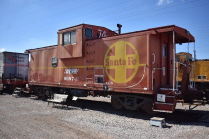 Santa Fe caboose 999741 built by International Car in 1978 for the Toledo, Peoria and Western. In 1986 it was absorbed into the Santa Fe system and retired in 1992.