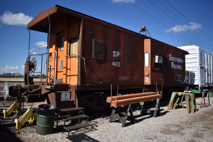 Southern Pacific caboose 4603 built by International Car Company in 1978. The caboose was used in mainline service out of Tucson until 1994, last used in service on the Buckeye Local out of Phoenix and donated to the Museum in 1996.