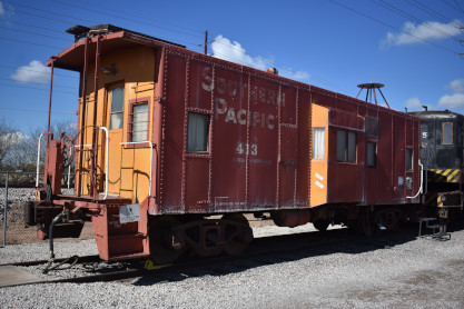 Southern Pacific caboose 413 built by the railway 1947 for Texas and New Orleans as 512. It was retired in 1982 and donated to the Arizona Chapter National Railway Historical Society who donated it to the Arizona Railway Museum in 1994.