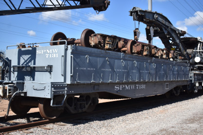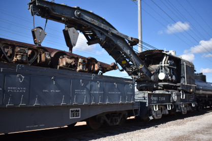 Southern Pacific 120 ton steam derrick tool car 7131 built by American Car and Foundry in 1949. It was placed on the National Register of Historic Places in 2007.