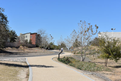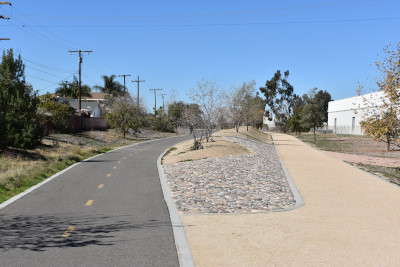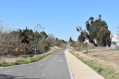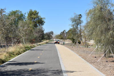 We crossed State College Blvd and started our westward walk of the trail. Now we will walk to Brea Blvd.