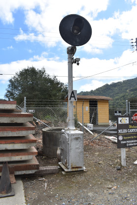 The Niles Canyon Railway map in their office. We thanked Glenn for an excellent tour then walked out with him through the gate, which he closed, and our tour was officially over. We returned to the car where I put the pictures into the computer before we took Greg and Marty east along the railroad to show them the future expansion. We then drove back through Niles Canyon to Niles where we let them look around the station, caboose and crossing signals because we had already photographed everything in this area, so we thought.