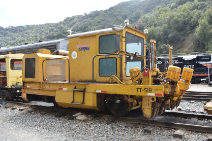 Niles Canyon Railway's tree cutting hi-rail truck.
