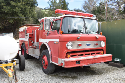 McCloud River Railroad water car 1711 built in 1914 as outside-framed boxcar 3029, converted to log flat car 2325 in 1938 and a tank and fire pump was added in 1941 to create the fire car.