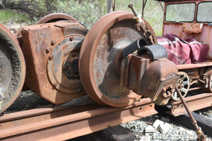 Southern Pacific 2-6-0 1744's driving wheels under restoration.