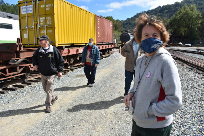 We found Glenn Fountain who led us over to the Brightside Yard. I became a member of Niles Canyon Railway in December 2020 and in the welcome letter was an offer for a yard tour when we were next in the area. This is something that is offered to all members and a guest, regardless of whether or not they actually volunteer. Elizabeth, of course, was my guest. Greg Smith also joined the Pacific Locomotive Association and his brother Marty was his guest. Marty was quite amused by the electronic gate that Glenn opened with a key card and it closed the same way.