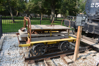 A track speeder in front of the steam engine. Next we went into town.