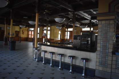 The inside of Pueblo Union Station built in 1890 and used by Denver and Rio Grande Western, Missouri Pacific, Colorado and Southern and Santa Fe. We walked back outside.