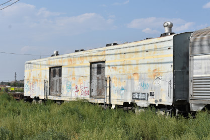 Royal Gorge baggage car 8001, ex. Southern Pacific Maintenance-of-Way 7149 built by Pacific Car and Foundry in 1962 as a 67xx series baggage car. Once Southern Pacific no longer had a use for the car, it was sold and eventually ended up in storage on the Canon City & Royal Gorge tourist line. The car was moved to the Pueblo Railway Museum around 2018.