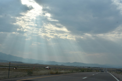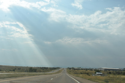 Two views of the sky on the way to Penrose where we stopped for Exxon for gas. We then went to Canon City and checked into the Quality Inn before going to Village Inn for dinner, after which I worked on story before the two of us called it a night.