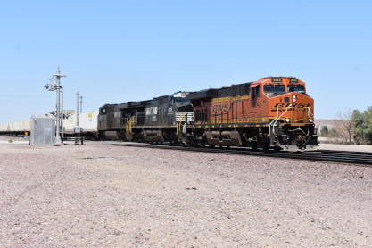 BNSF 6596 East with Norfolk Southern AC446CM 4051 at Sanders.