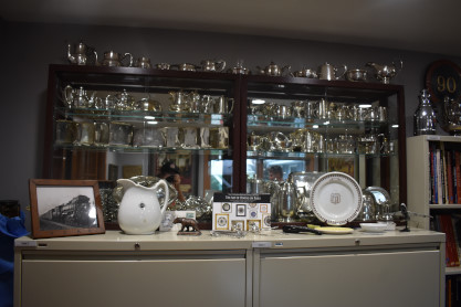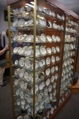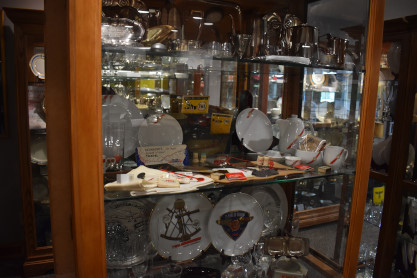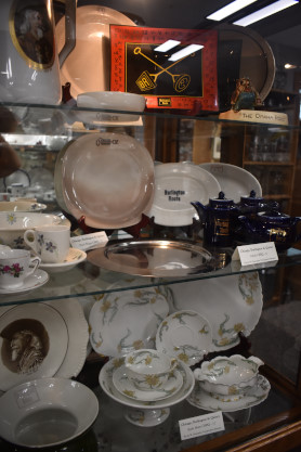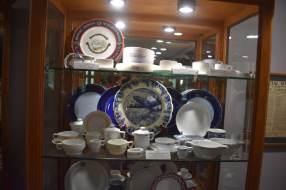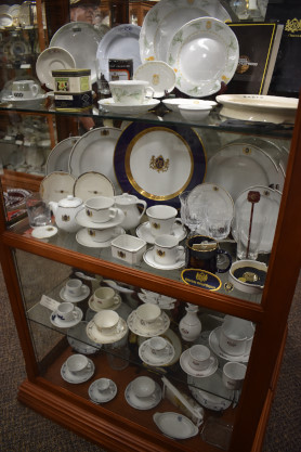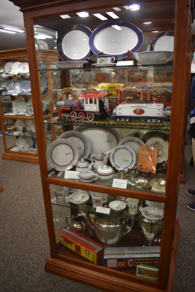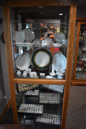 Caboose marker lights. All of the items in these photographs since the aviation china are displayed around the perimeter of the room. The main area holds the railroad china collection.