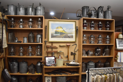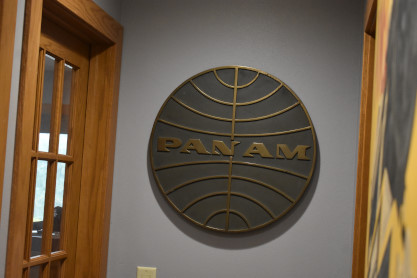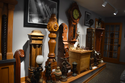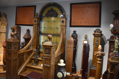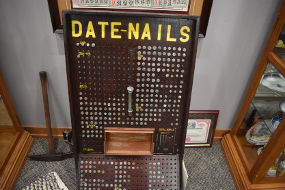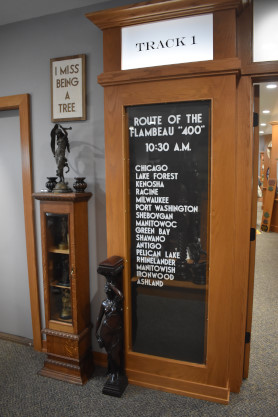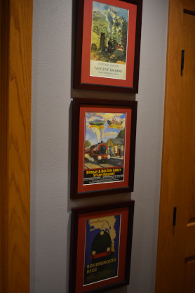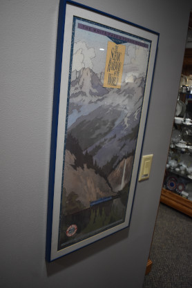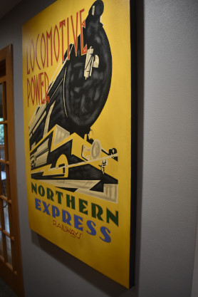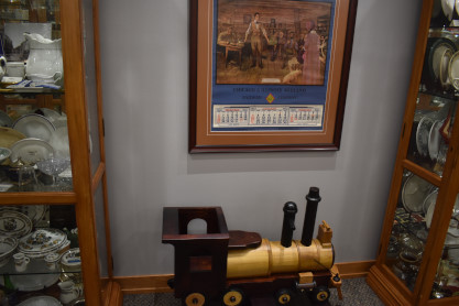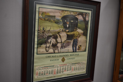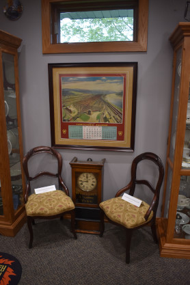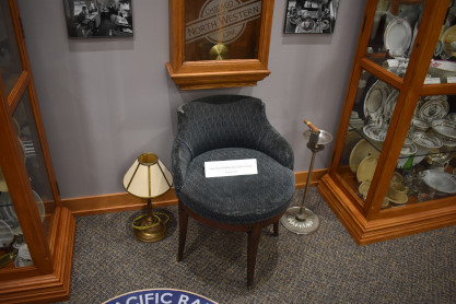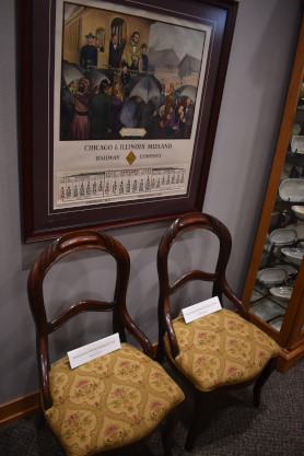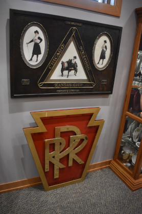 Pennsylvania Railroad partial railroad calender and dining car chairs.