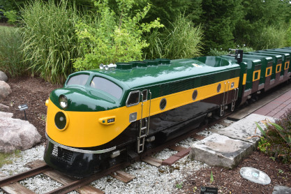 The diesel engine that pulls the train. Now sit back and enjoy a ride on the Dairyland Express at the Christopher Farms and Gardens.
