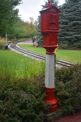 During lunch, it poured down rain turning the path we took into a river. After that shower had past by us, Elizabeth and I walked back to the train station to show you a few more railroad related things.