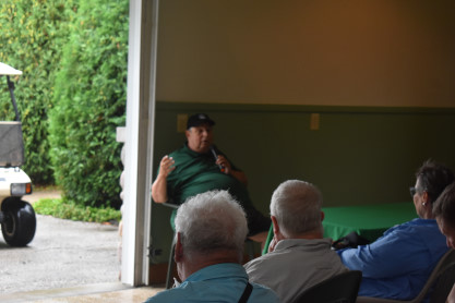The Grafton Road station with my loving wife under her umbrella. We went into the Greenhouse and Conservatory and I went to use the bathroom after everyone had done so, I walked back and took a seat then Elizabeth and I used our umbrella to get everyone who needed it back into the Landscape Barn to listen to a question and answer session with Mr. Christopher.