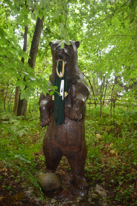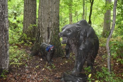 A grizzly bear tearing up a Green Bay Packers jersey.