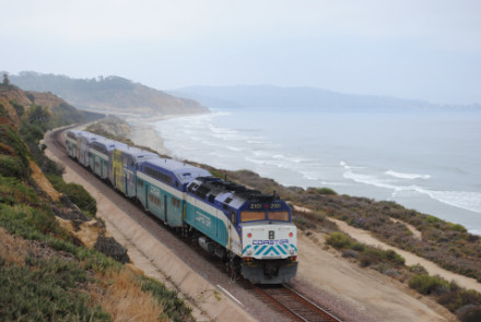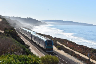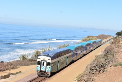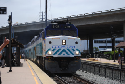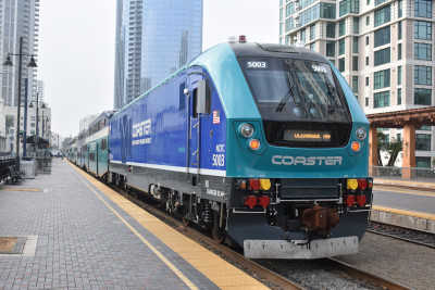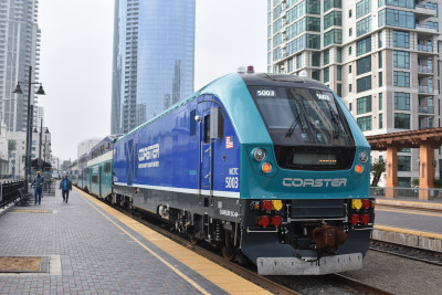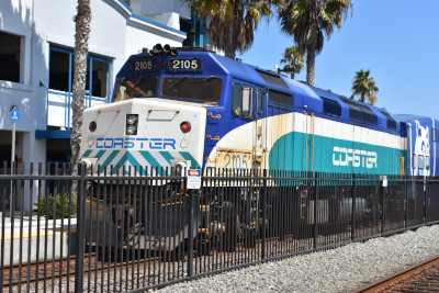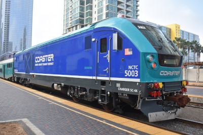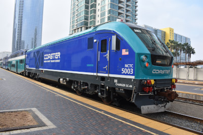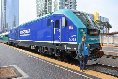 First Day Run of the Coaster Siemens Charger Units in Service 2/8/2021It was Marty Smith's birthday and we decided to ride the first day trips of the Coaster new engine in regular service. Elizabeth and I picked Marty up and drove to Oceanside, then purchased tickets for our round trip from Oceanside to San Diego.