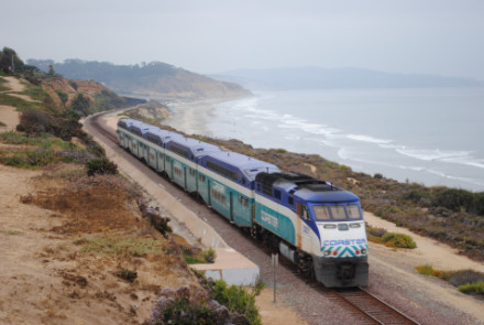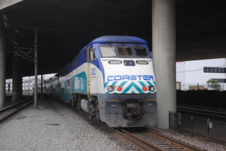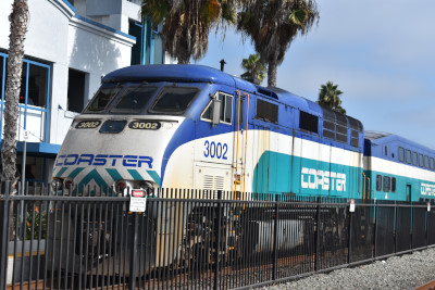 Coaster F59PHI 3001 on Coaster 656 at Oceanside.