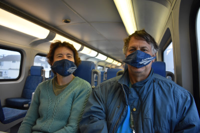 Marty and Elizabeth practicing safe train riding during these Covid 19 times in America.