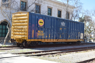 The Firefighters Education and Foundation Safety Train boxcar MCVX 368381, nee Pennsylvania Railroad 118261 built in 1965.