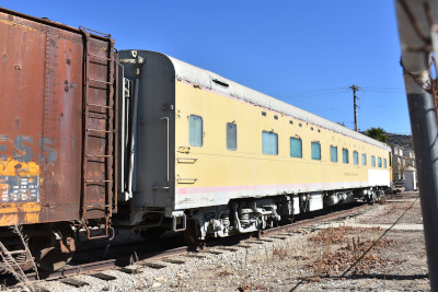 Union Pacific sleeper 1205 "National Embassy" built by Pullman-Standard in 1955. Owned by the Pacific Railroad Society for a few years, it was later put on display outside the Miramar Resort Hotel in Santa Barbara before being moved to Fillmore in 2000.