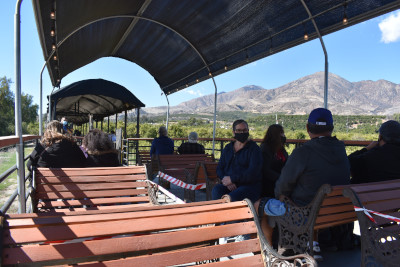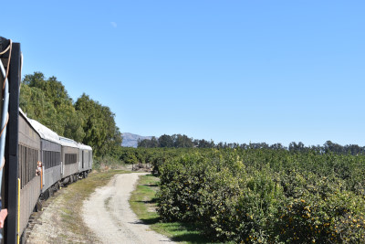 Elizabeth has been waiting to ride a local tourist train since she moved to southern California last spring. With COVID-19 happening, this was impossible. Finally, two weeks ago, we discovered that the Fillmore Western Railway was running a train once a week on Saturdays. Marty and Greg came over one evening to watch a program and we asked them if they would like to join us on a trip to Fillmore. They both said yes so tickets were bought for the Saturday when Metrolink's Orange County line would be closed south of Laguna Niguel due to track work.