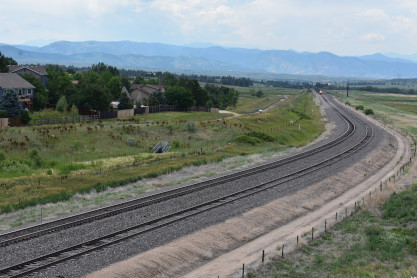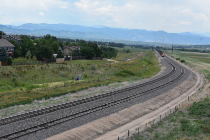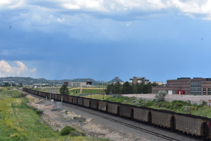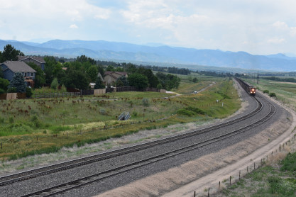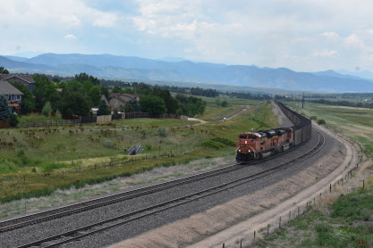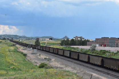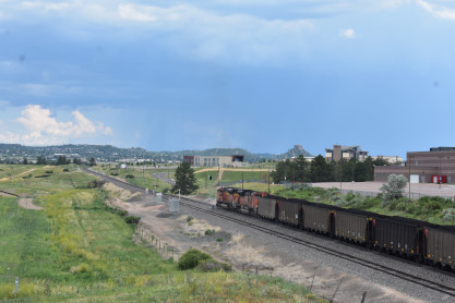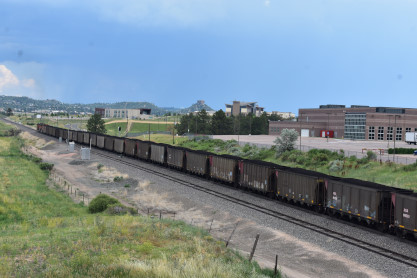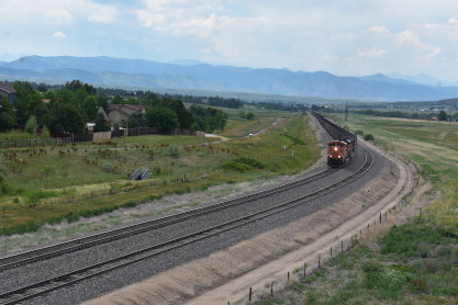 The Boulder Colorado and Southern station built in 1894 which now houses a restaurant. I drove us down to Castle Rock, avoiding Denver. On the way there, we passed a slow-moving southbound BNSF coal train and found a bridge from which to photograph it. This would be Elizabeth's first Joint Line train.