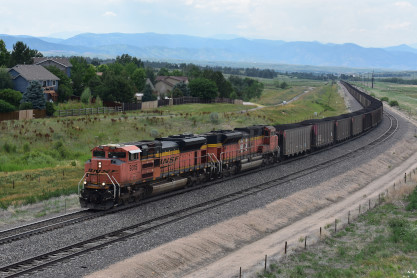 The slow-moving coal train had BNSF SD70ACe 9315 and BNSF SD60M 9203 with DPUs AC44CW 5660 and SD70MAC 8948. From here we went to Jersey Mike's for an early dinner before driving to our final photo location of the day.