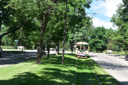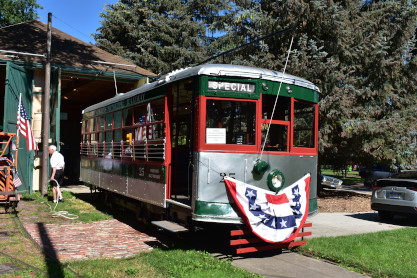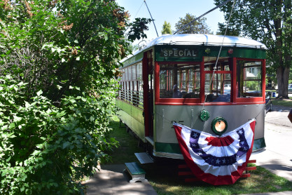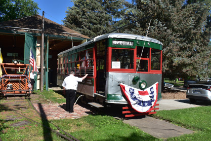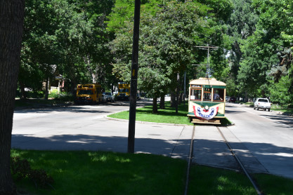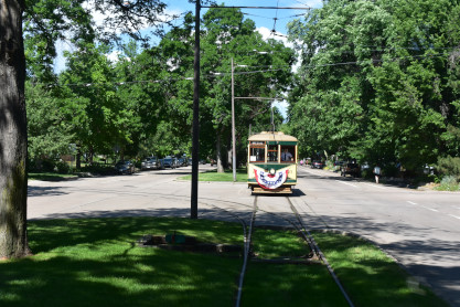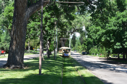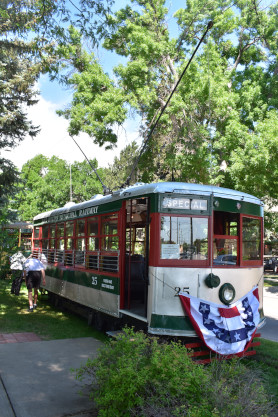 Our next stop was the Fort Collins Municipal Railway car shop built in 1919. From here, we drove to Fort Collins City Park and parked in the shade as we knew it would be a very hot day. We walked from the car to the car barn where the current trolleys operate from.