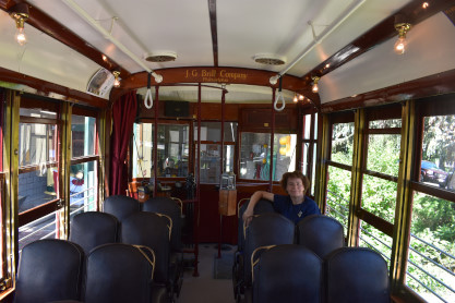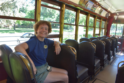 My lovely wife Elizabeth waiting but enjoying her time aboard Car 25. This is her first time here. Sit back and enjoy this historic trip when we have Car 21 following us down Mountain Avenue which has only occurred once before.