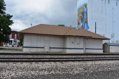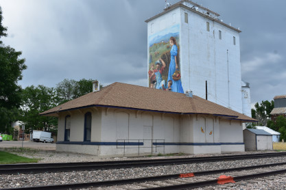 The Berthoud Colorado and Southern station which is now a Lions Club building. The mural on the grain elevator is called "Berthoud's Roots" and was painted by Susan Dailey in 2004. It took over 2000 hours over five months to complete. It is made of 55 acrylic panels which were secured to the elevator.