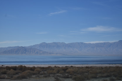 An out-of-the-window shot of the Salton Sea.