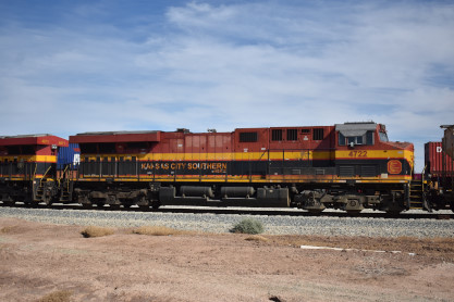 We found two Kansas City Southern de Mexico units at the new grain loading facility in Calipatria.