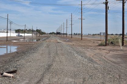 The grade of the former Holton Interurban. This abandoned railway was first built in 1910 as the Holton Interurban Railway. It branched from a Southern Pacific line at El Centro and ran 11 miles eastward to the town of Holtville. Both Holtville and the Holton Interurban derive their name from W. F. Holt, an entrepreneur who developed the surrounding area of Imperial County in order to tap into the natural resources. The line was subsequently purchased by the Southern Pacific, who continued to operate the Holton Interurban to Holtville; indeed, SP also built a line that connected with the Holton Interurban at Holtville from the north (Calipatria to Holtville). It is not known when the Holton Interurban last saw revenue service as an interurban proper; freight-wise, the line saw significant amounts of sugar beet trains, as well as Pacific Fruit Express business. During this time, it was known as Southern Pacific's "Imperial Valley Branch".